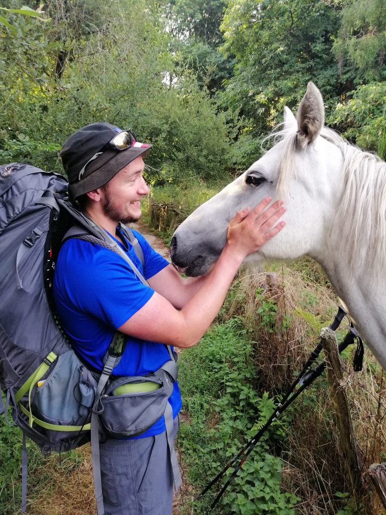 Wahnsinn, was die Gesellschaft von einigen netten Menschen ausmacht. Nach dem Abend gestern, marschiere ich heute aufgeladen, als hätte ich den Duracell-Hasen gefrühstückt, ohne Probleme Kilometer für Kilometer. Die Energie ist auch mehr als notwendig, denn in der bergigen Landschaft, in der ich mich gerade befinde, geht es wirklich andauernd auf und ab…