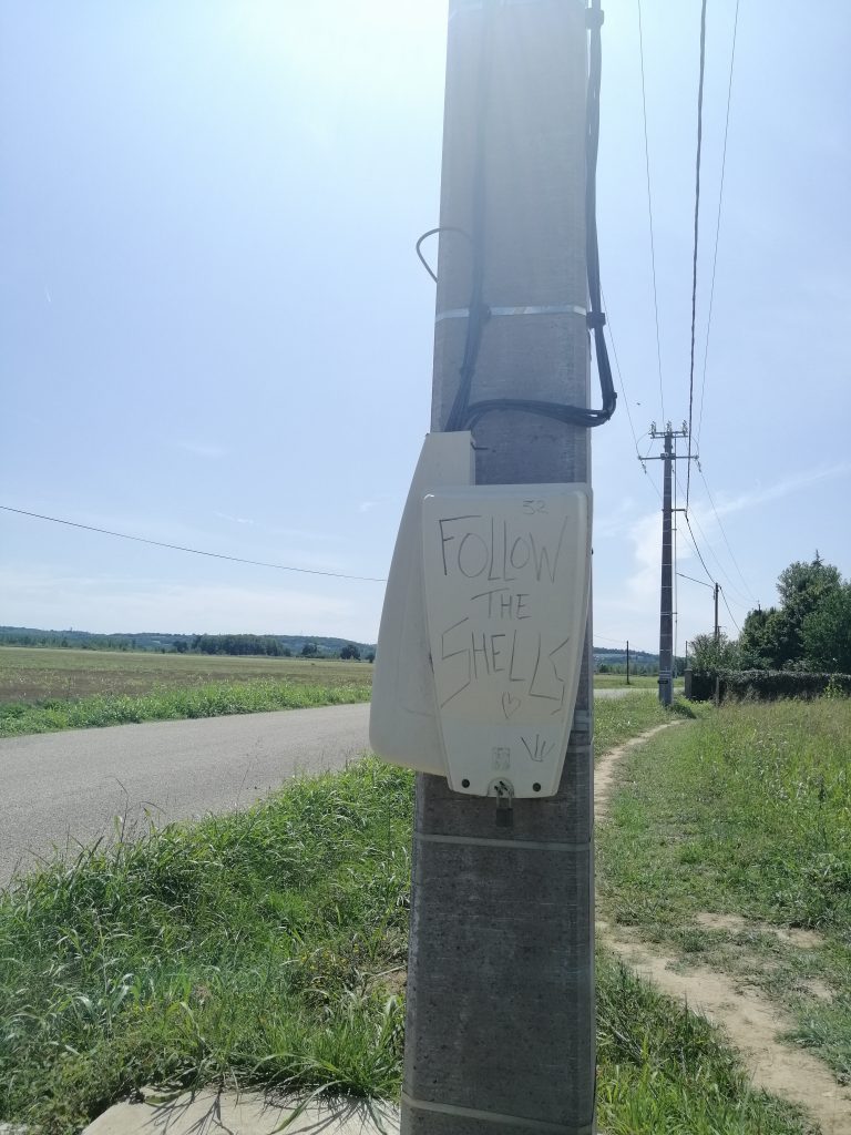 Nach der gestrigen Aufregung nach meinem Kochspektakel fällt es mir schwer, Schlaf zu finden, was sich natürlich heute morgen sofort rächt. Nicht mal das Frühstück kann das heute richten. Also mach‘ ich mich, ein wenig geschlaucht, aber doch motiviert, auf die Suche nach der blauen Markierung mit der Muschel. Das dauert ein wenig, da ich orientierungslos quer durch den Ort laufen muss. Da ist sie! Na bitte, wieder auf dem Weg…