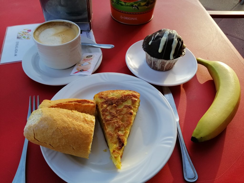 Die erste Woche ist fast vorüber und ich fühle mich auch dementsprechend. Mit müden Knochen und schmerzenden Muskeln wälze ich mich aus dem Bett. Als einziger Gast in der Herberge bekomme ich ein ganz besonders ausgiebiges Frühstück und viel besser noch, meinen ersten Stempel im Pilgerpass…