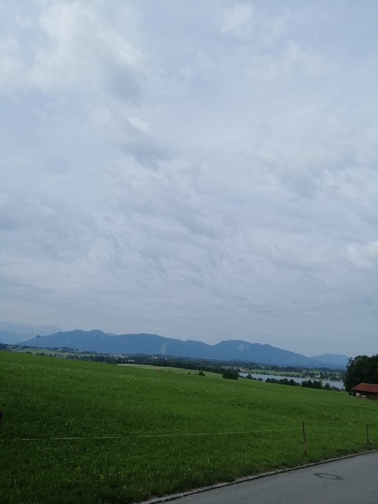 Heute ist ein wirklich mittelmäßiger Tag. Er beginnt mit einem Frühstück, das echt nichts Besonderes ist, aber mir dafür einen wunderschönen Ausblick auf die Alpenkette zwischen Österreich und Deutschland und auf die Zugspitze beschert…